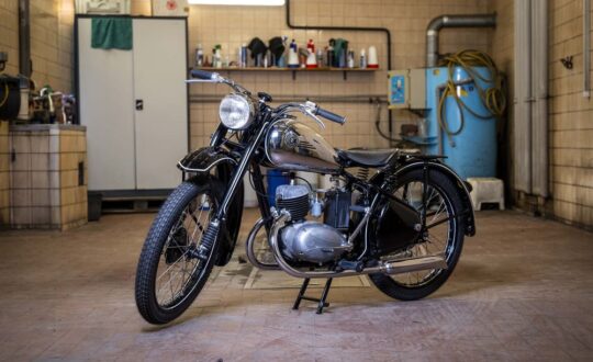 Motocykl po zcela kompletní renovaci z původních originálních dílů prakticky bez použití replik. Při renovaci dostal kvalitní profesionální lak v atraktivním provedení slonová kost a ručně malované linky. Po renovaci neježděno, vystaveno v soukromé expozici. Stroj je plně funkční a pojízdný.