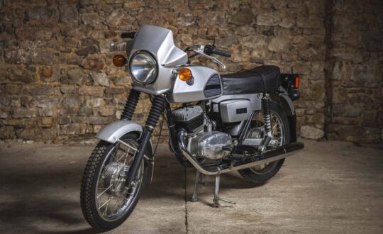 Nesmírně atraktivní vrcholná verze Sport na 19“ kolech, kterých bylo vyrobeno jen velmi omezené množství (méně než 6.000 ks) oproti klasickým panelkám. V tomto případě navíc motocykl zrenovovaný do vzhledu speciální vývozní verze typu Sport určené pro USA trh. Americká exportní verze sportky se vyznačuje touto typickou přední maskou s bočním umístěním spínačky a umístěním klaksonu na pravém boku motocyklu pod nádrží. Stroj je po zcela kompletní kvalitní renovaci, kdy dostal nový profesionální lak, ruční linky, má nové prvotřídní chromy, dále byla provedena generální oprava motoru a všech mechanických částí. Motocykl nebyl prakticky vůbec provozován. Po renovaci především zdobil soukromou sbírku. Sportka je plně funkční a provozuschopná v opravdu luxusním sbírkovém stavu.