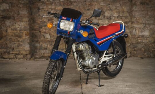 U nás poměrně málo vídaný motocykl určený na export do Ameriky. Trail byl dovezen zpět ze státu Kansas (USA) jako prakticky nejetý motocykl s nájezdem pouhých 54 mil. Ten má poměrně snadné vysvětlení. Motocykl měl totiž vadu z výroby v podobě chybějící segrovky na pístu, což způsobilo defekt a vyskočení pístního čepu. Od té doby zůstal motocykl nepojízdný a na dlouhá léta se pohyboval po různých skladech. Posledních pár let strávil pod venkovním přístřeškem, proto má na sobě i nějaké šrámy, které se podařilo zaretušovat. Každopádně je ve zcela původním a originálním stavu.