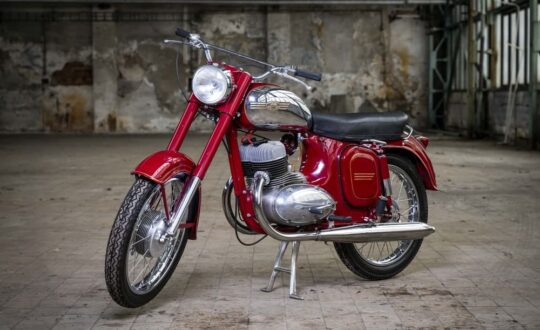 Dospělejší z dvojice úspěšných a oblíbených Péráků v posledním provedení „komunista“ po kompletní pečlivé renovaci tzv. do šroubku. Veškeré odborné práce jako lakování, generální opravu motoru, repase zapalování, chromy a podobně byly prováděny v profesionálních dílnách. Ruční linkování pak přímo v Týnci nad Sázavou u bývalé linkařky z Jawy. Nádrž nemá nový chrom, boky jsou lakovány a leštěny.