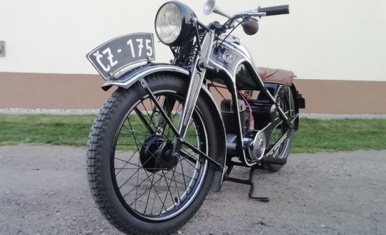 ČZ 175 jednovýfuk, modelový rok 1935, vyrobeno před Vánoci 1934. První sériově vyráběný dospělý motocykl ČZ (předtím vyráběna pouze motokola), konkrétně 150. vyrobený kus. Celkem vyrobeno 2046ks jednovýfuků. Tento model se od všech následujících typů liší jedno výfukovým motorem, výfukem, přední vidlicí, blatníky, světlometem a jeho obalem, přepínači, řidítky 25mm, palivovou nádrží, koly a brzdami. Po zdařilé amatérské renovaci v 80. letech, což zaručuje naprostou autenticitu motocyklu. Motocykl má originální platný technický průkaz mapující historii stroje, navazující na předchozí typový list. Před aukcí bude provedena čerstvá STK. Na motocyklu je neoriginální karburátor Graetzin (má být Amal) a pravděpodobně není originální sklo předního světlometu a držák zadní svítilny.