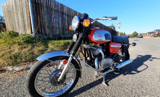 Plně funkční ojedinělý motocykl s platným přepsatelným TP (stará knížečka, již nová SPZ) a čerstvou technickou kontrolou. Bizon v nadstandardním technickém stavu s dobovými dodělávanými blinkry, řidítkové přepínače již nepůvodní. Nová zadní pneumatika a baterie, nový červený lak, nový potah a výplň sedla. Systém Oilmaster odpojen. Chrom na kolech a výfucích již horší. Nízká výrobní čísla. Vyrobeno velice málo kusů, jedná se tedy o velmi perspektivní stroj.