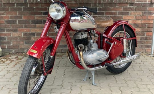Motocykl po kompletní renovaci přibližně před 20 lety v renovační dílně pana Košťála, čili zcela bez dnešních replik. Roky neprovozováno, pouze vystaveno ve sbírce. Poslední technická v roce 2011. Původní platné přepsatelné doklady, včetně původní dobové RZ. Bude potřeba oživovací servis po letech nečinnosti. Ten bude pro výherce aukce bezplatně zajištěn právě v renovační dílně pana Košťála. Samozřejmě budou doplněny i aktuálně chybějící táhlo zadní brzdy a krytka.