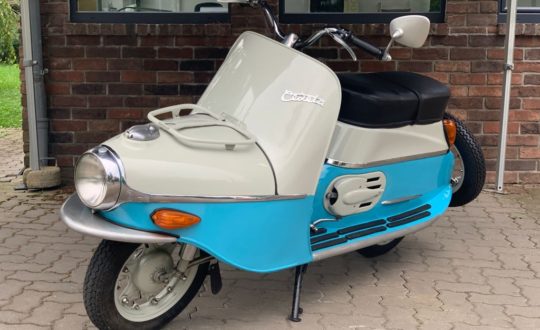 Moped před lety renovovaný, nově nalakovaný, motor po repasi, dále již neprovozován, pouze vystaven ve sbírce. Chromované díly byly ponechány v původním stavu pro zajištění autenticity a originality stroje. Replikou je pouze potah sedla. Motor funguje bez rušivých zvuků, dobře táhne i drží volnoběh.